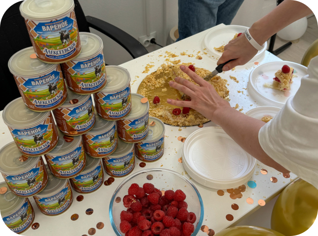 Играем в настолки, проводим корпоративы зимой и летом, празднуем день рождения каждого сотрудника.