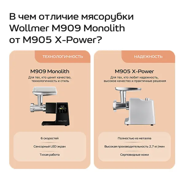 | Насадки для кеббе и колбас | ✔️ | ✔️ | ✔️ |