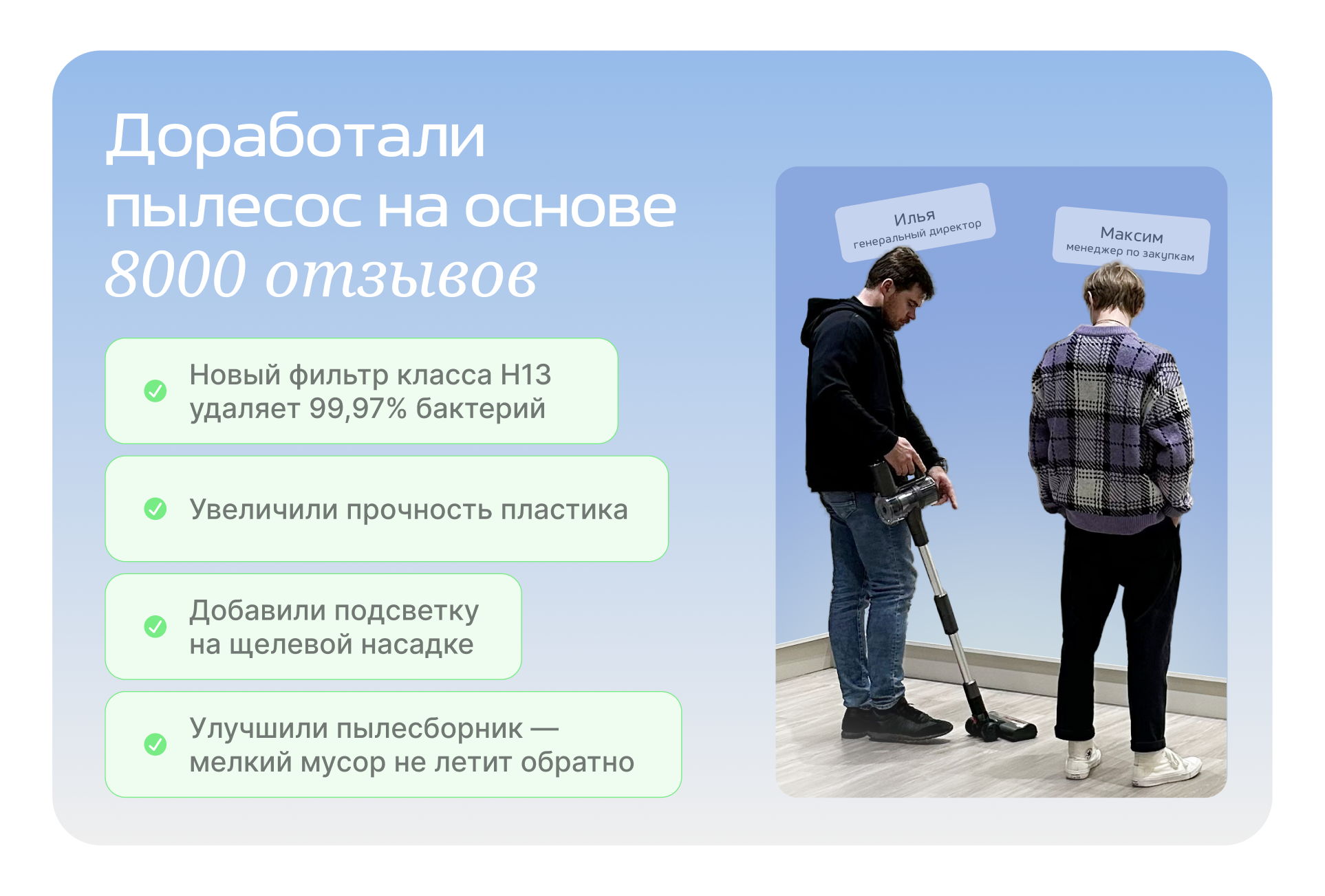 - Многократно тестируем продукты, чтобы их качество было на высшем уровне.