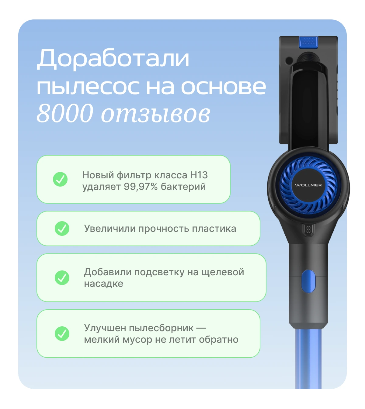 - Даем официальную гарантию 1 год с момента покупки на всю технику Wollmer