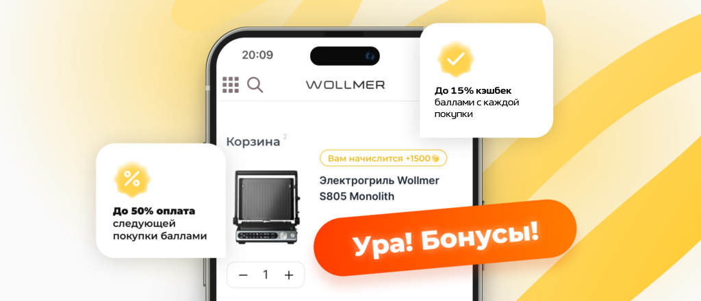 - За каждую покупку в Wollmer вам начислится до 15% бонусных баллов.