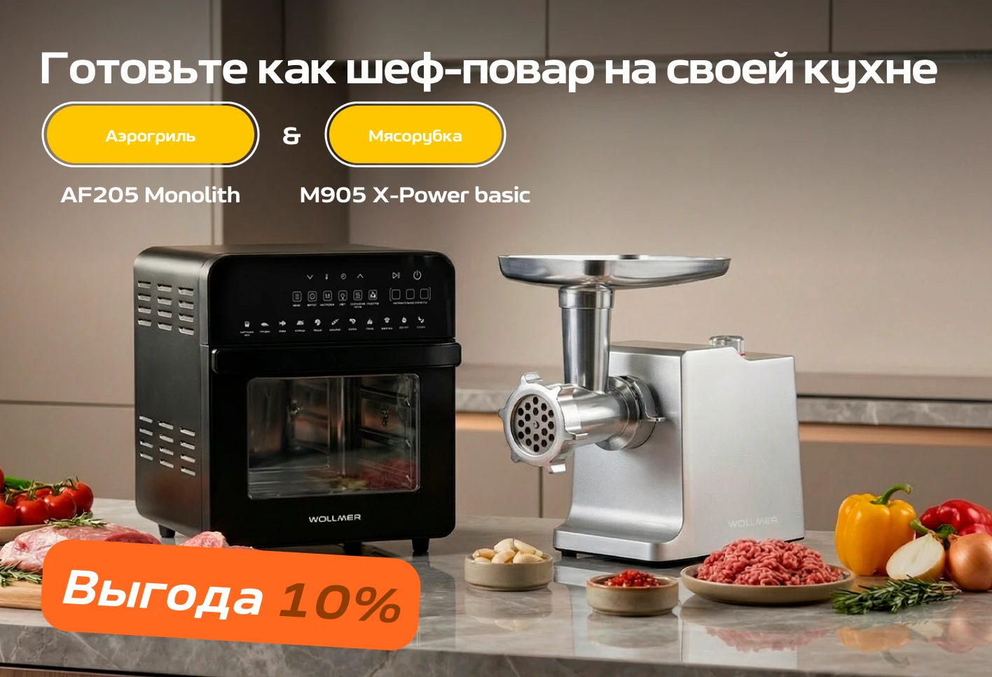 Комплект «Аэрогриль Wollmer AF205 + Мясорубка Wollmer M905 X-Power basic»