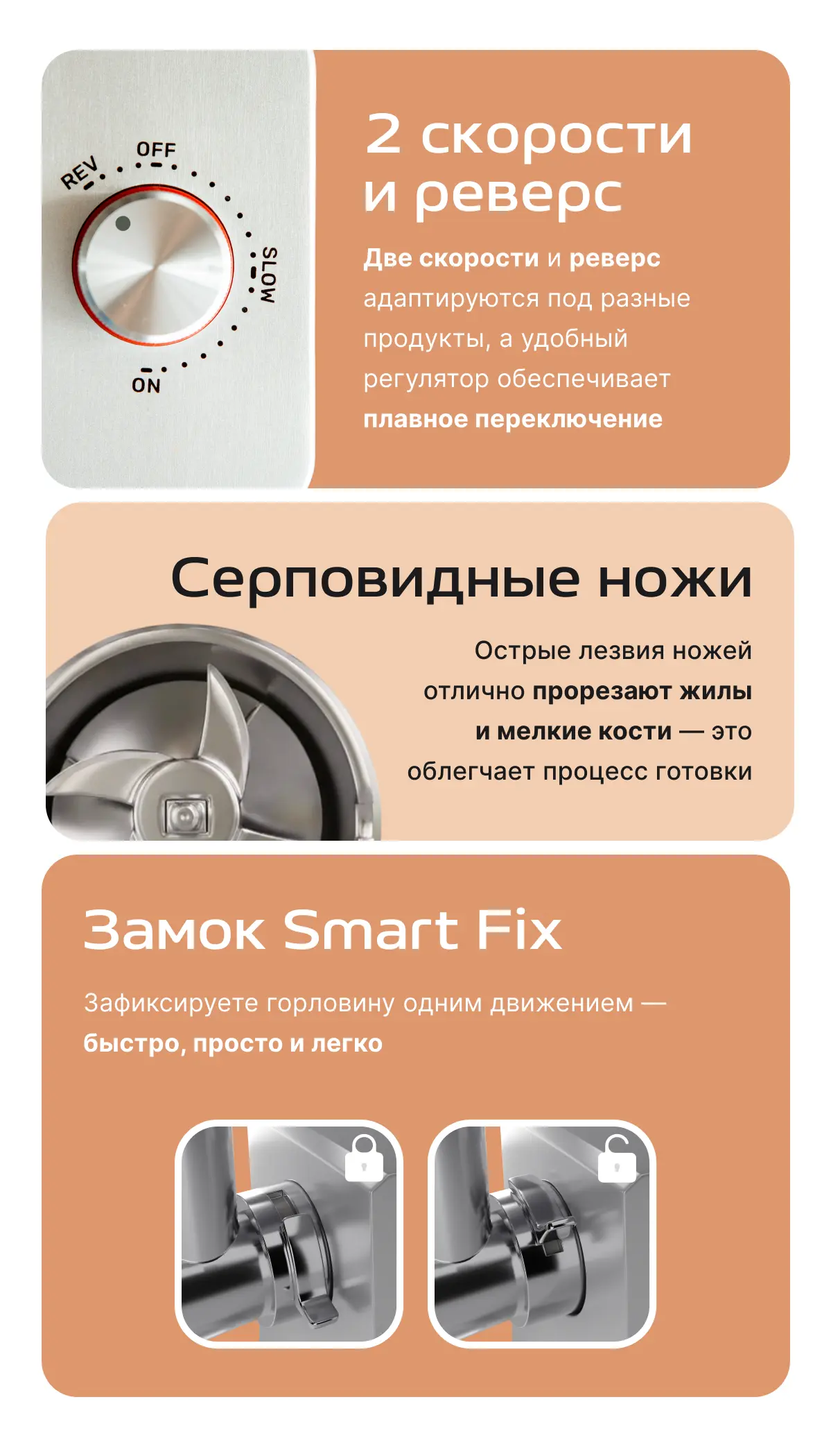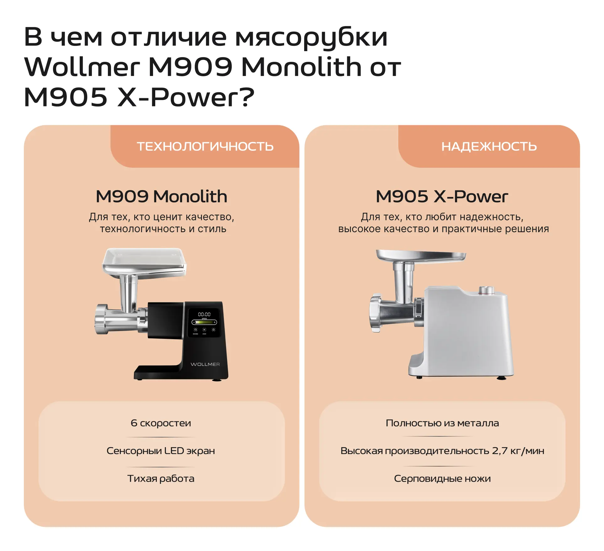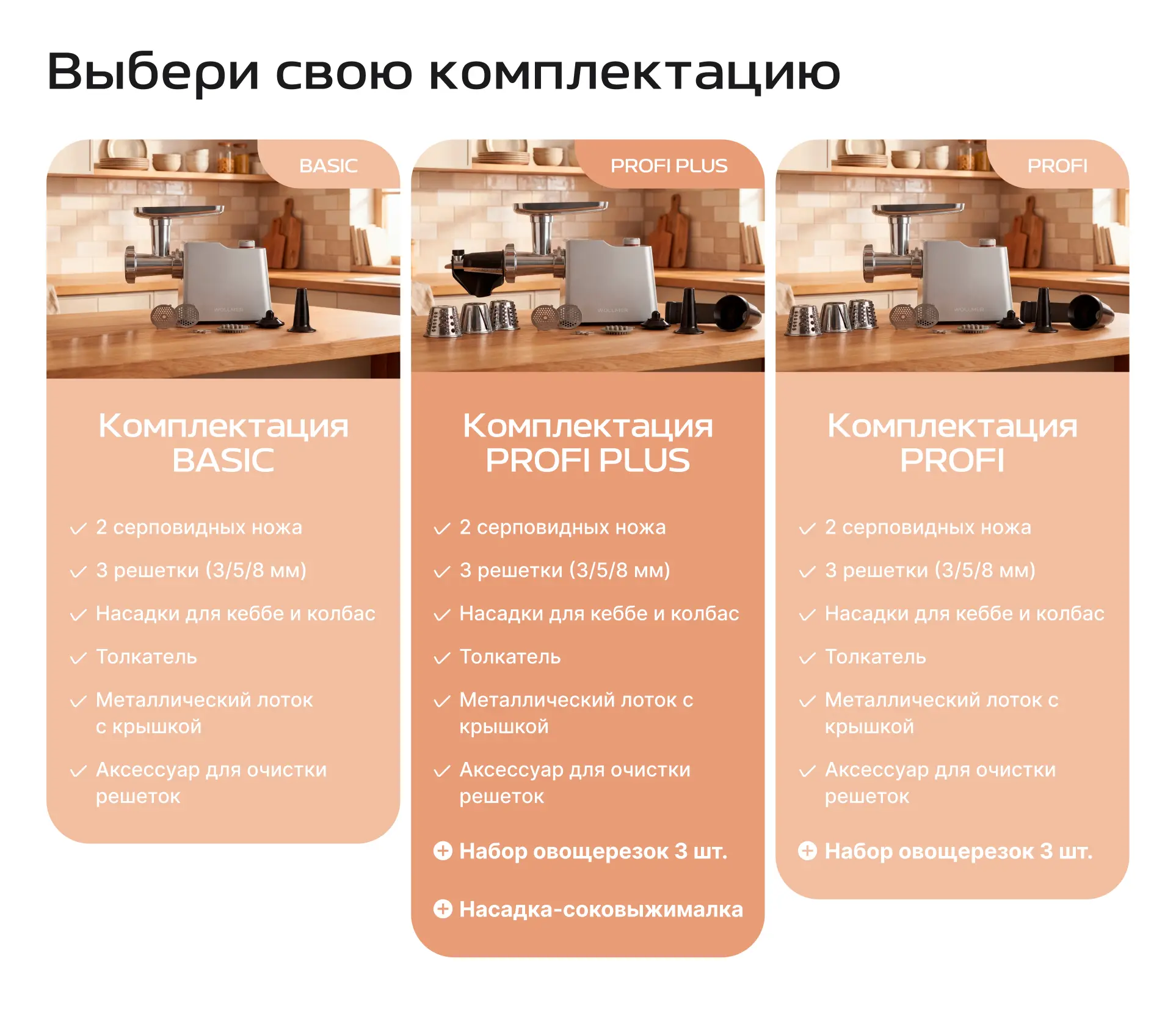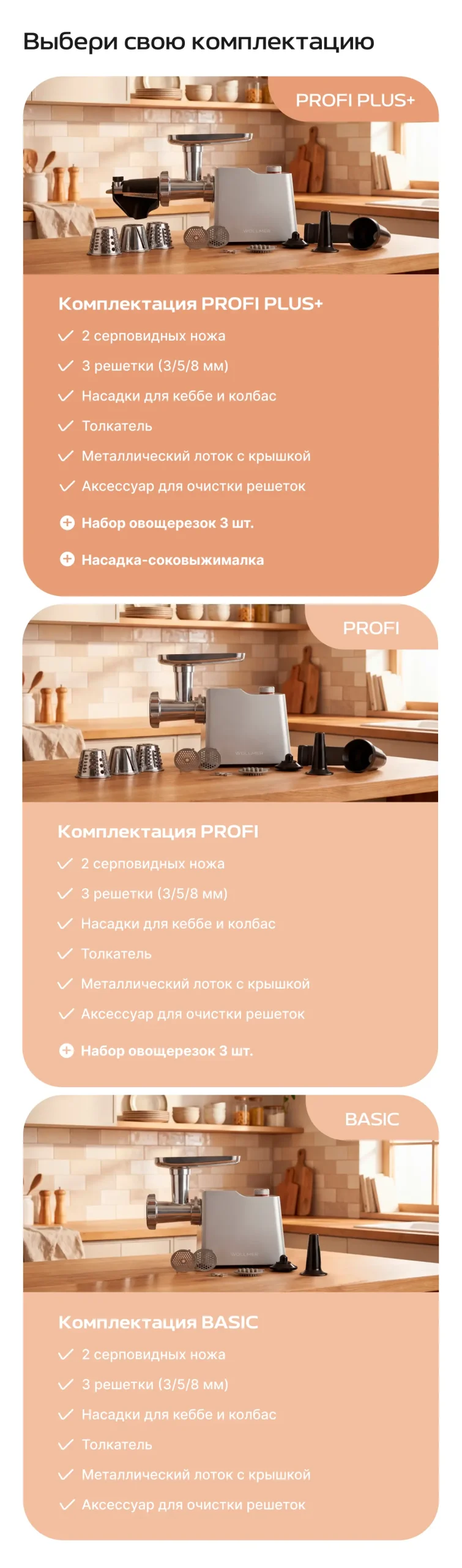 | Насадки для кеббе и колбас | ✔️ | ✔️ | ✔️ |