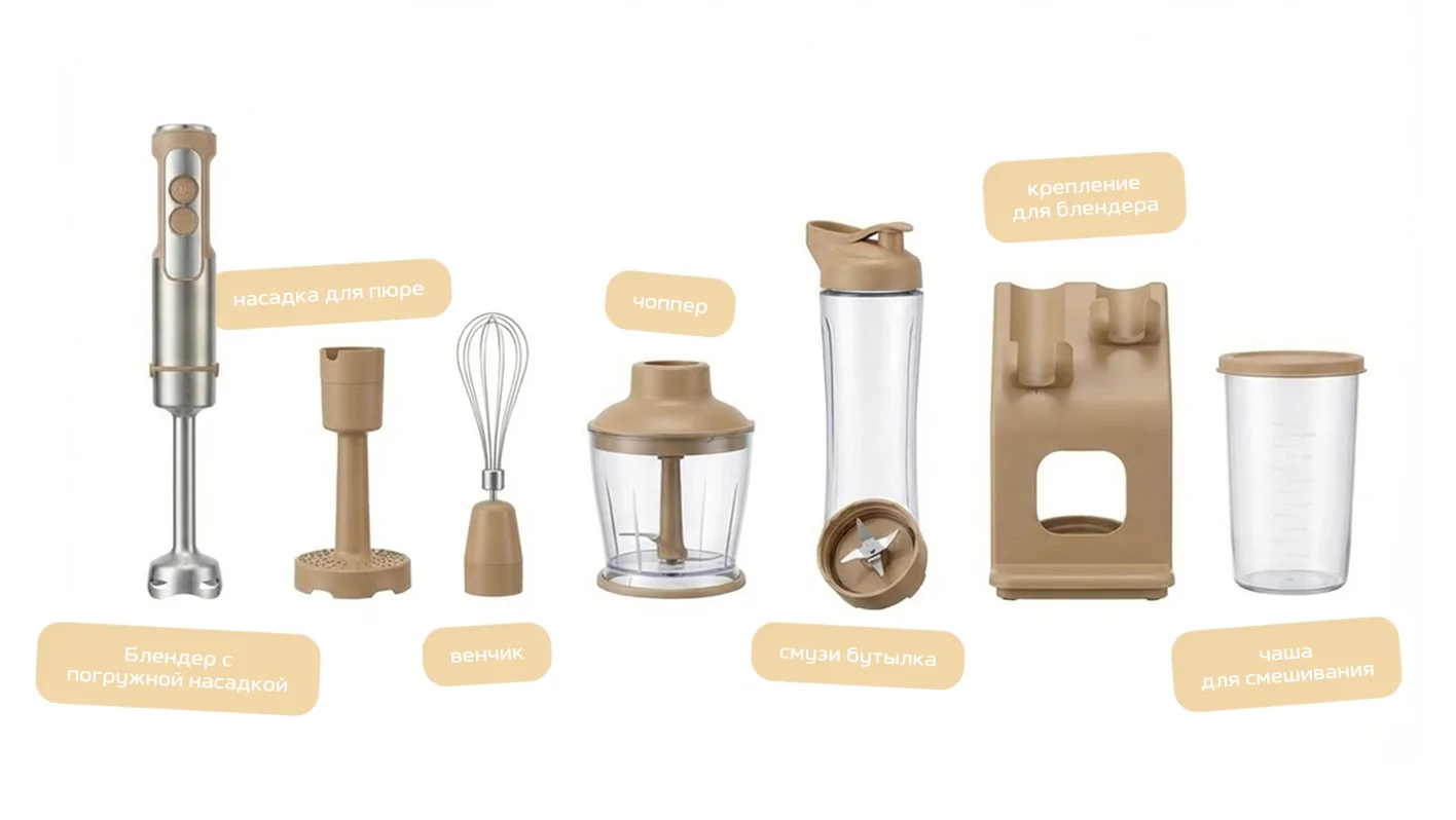 моторныи блок, погружная насадка, насадка-венчик, насадка-измельчитель, нож-измельчитель, Smoothie bottle, мерная чаша, насадка для пюре, аксессуар для хранения
