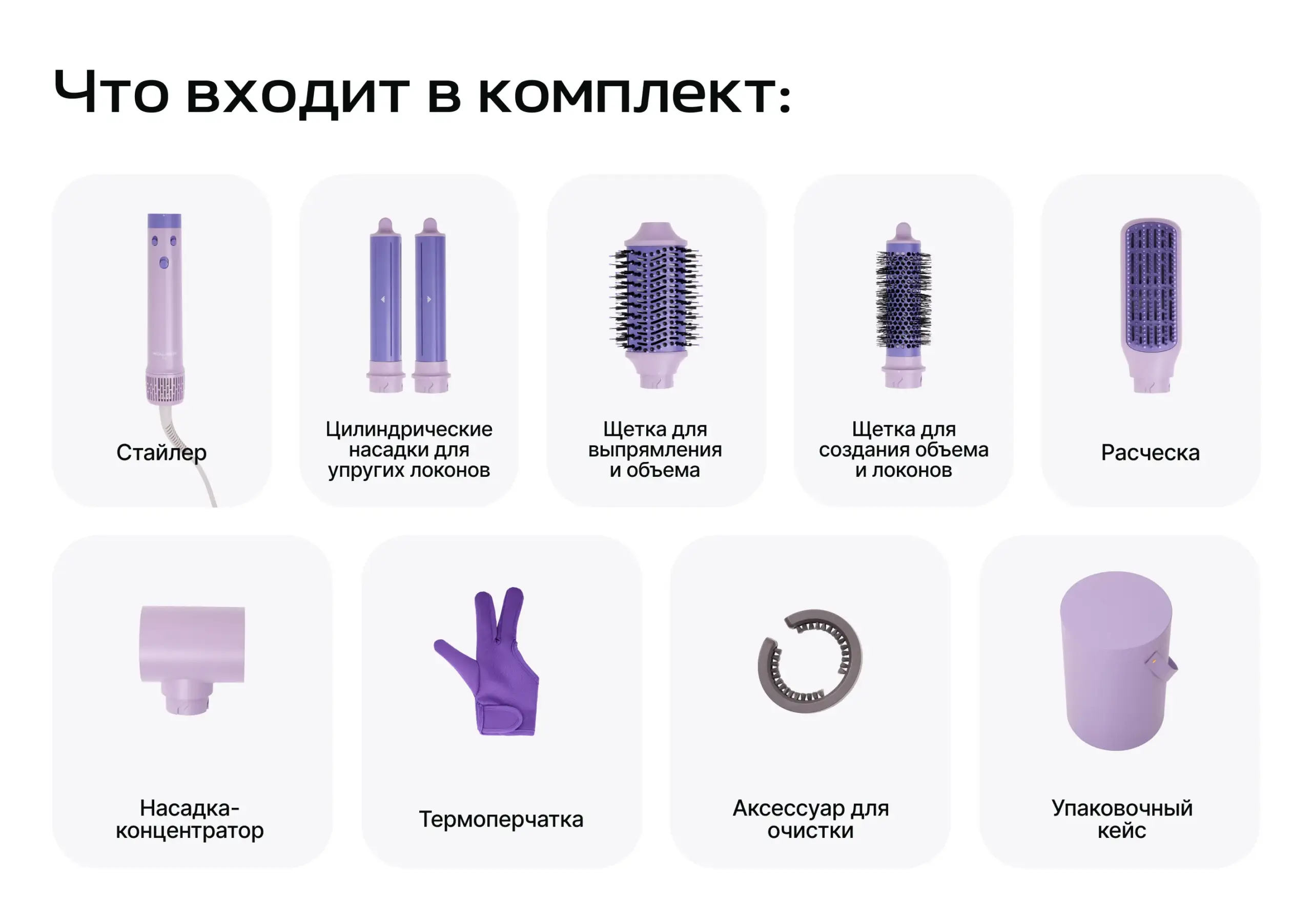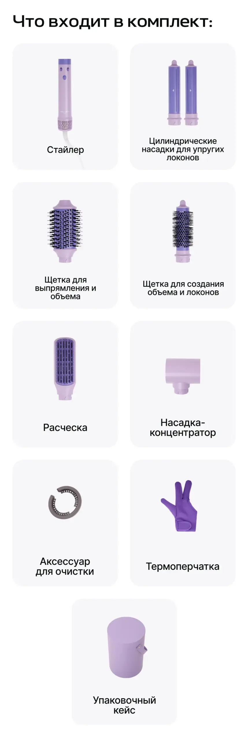 ●  насадки для объема, выпрямления и локонов