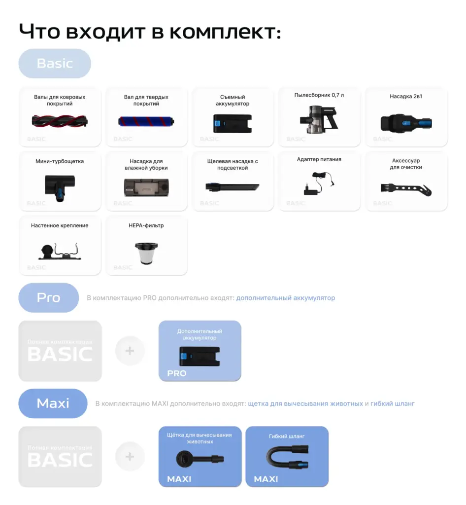 | В КОМПЛЕКТЕ | BASIC | MAXI | PRO |